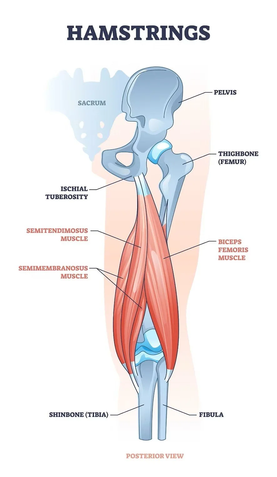 The hamstrings are a group of three muscles in the back of the thigh: